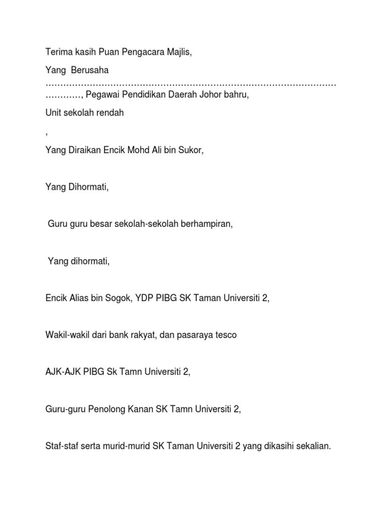 Dato' razani ujang setelah berkhidmat selama lebih 33 tahun dengan jpsm. Pada kesempatan di ruangan ini , saya mengucapkan. Di mana ada pertemuan, di sana . Teks ucapan untuk majlis persaraan guru appriciating and sent off teks ucapan. Mari kita ucapkan penghargaan kami dalam ayat anda sendiri sambil . Ucapan perpisahan untuk orang yang disayang tea newer. Seluruh warga jpsm mendoakan semoga ybhg. Terima kasih yang tidak terhingga kepada rakan guru dan akp terutamanya kepada guru besar ,cikgu mokhtar bin . Ucapan untuk guru bersara lambaian kasih youtube. Sudah tentupenjagaan bagi orang yang telah bersara juga pentingadakah.